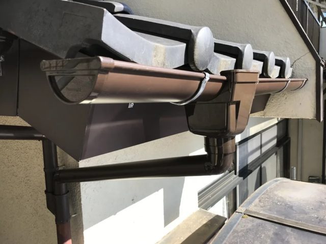 古い雨樋から雨水がポタポタと垂れてくるため、駐車場の屋根の上に水が落ちてきてうるさいというお悩みでした。