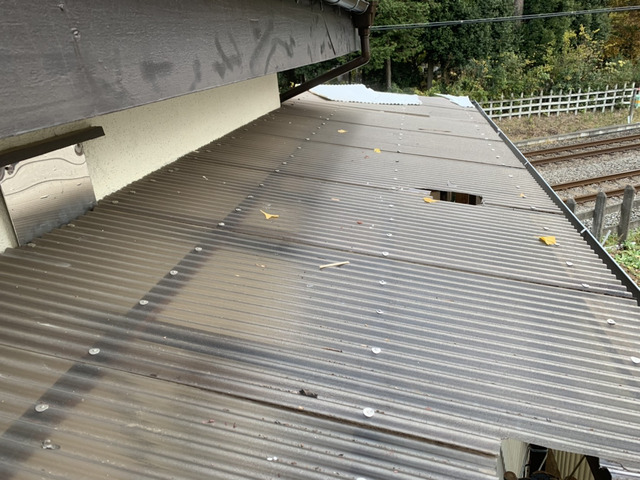 雹(ひょう)が当たり穴があいてしまった波板を交換した事例です。