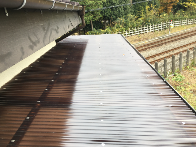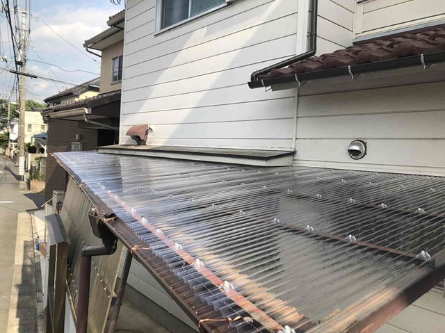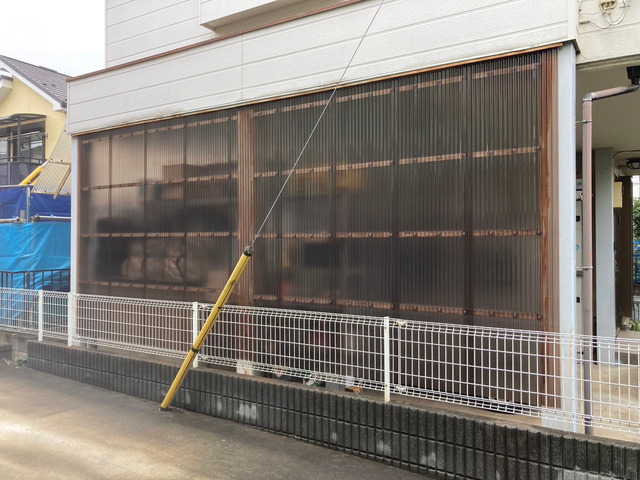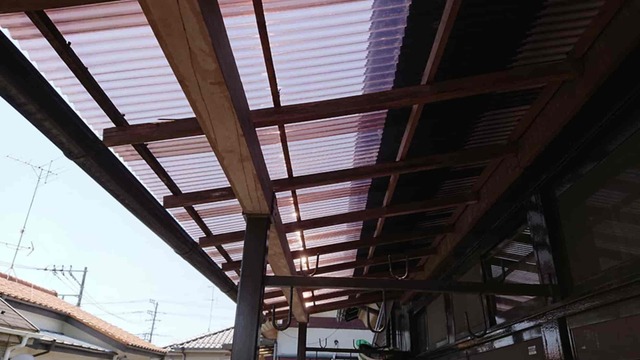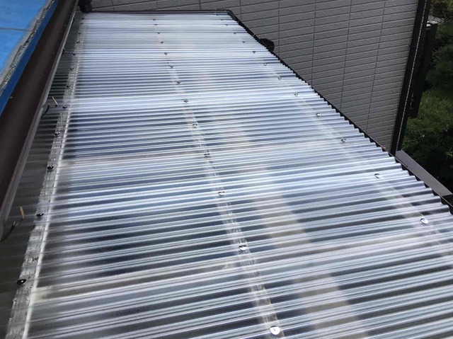 既存の波板を撤去し、新たにポリカ波板を設置しました。