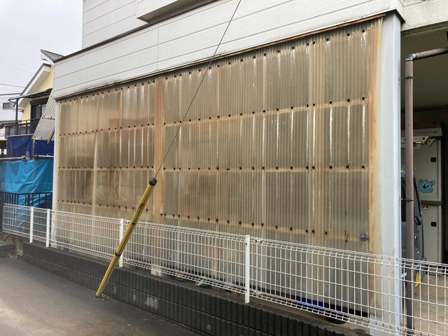 カーポートの目隠しに使っていた波板を交換した事例です。